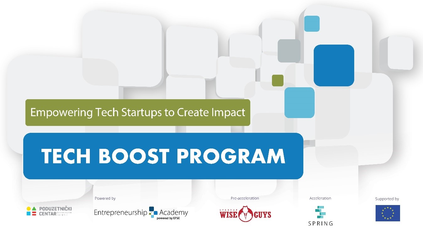 Pokreće ga EFSE-ova Akademija za poduzetništvo, a podržava ga EU. Cijela serija Tech Boost sastoji se od faza predakceleracije i akceleracije. Program nudi startupu priliku ubrzane akceleracije te da osvoji nagradu od 15.000 eura. Ali tu putovanje još ne završava! Startupi koji budu izabrani za fazu akceleracije imaju priliku prezentirati se investitorima i osigurati mnogo veća investicijska sredstva za svoje poslovanje.